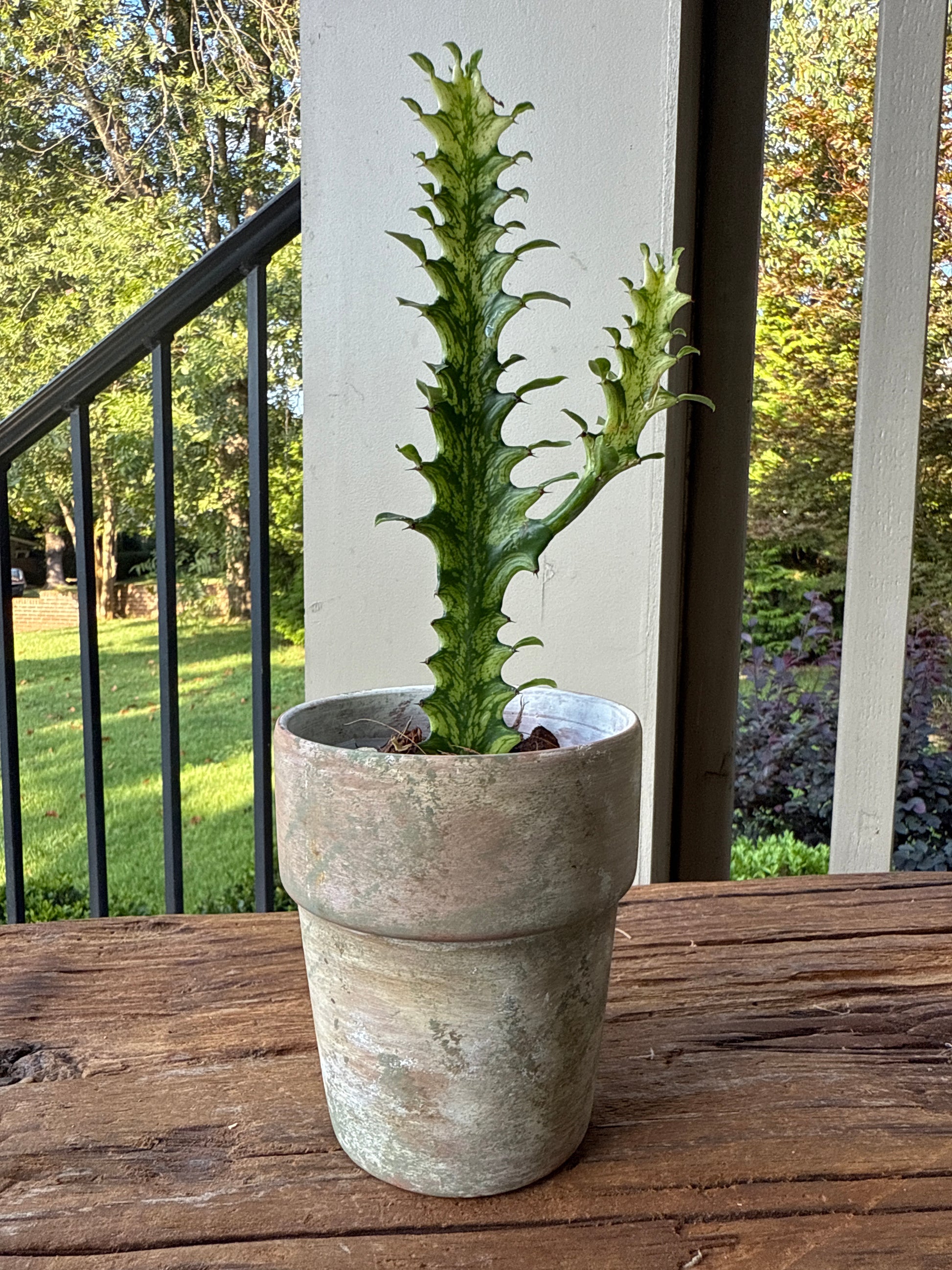 - Growth Habit: Upright, branching succulent with variegated stems